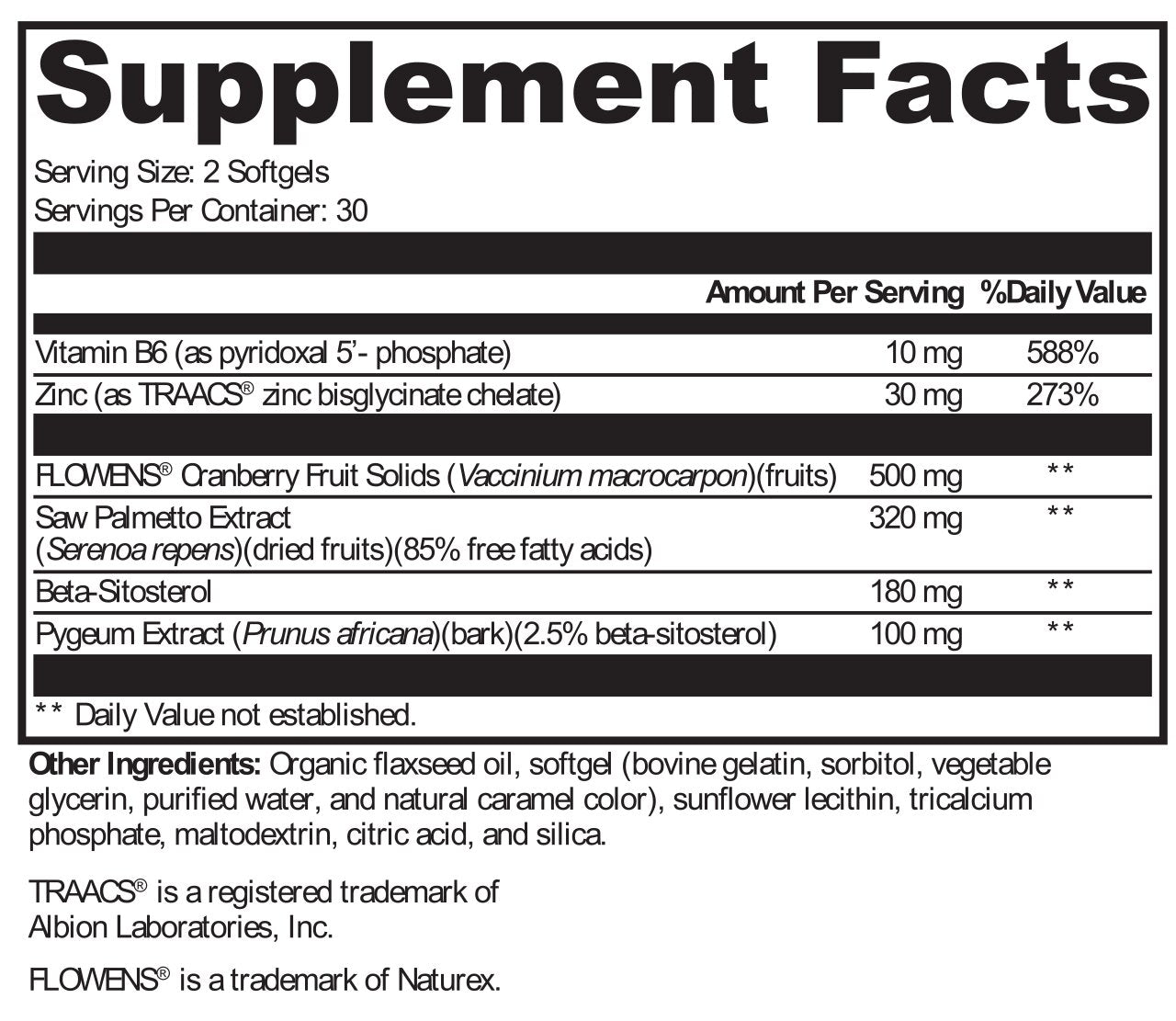 Prost-8 supports normal male lower urinary tract function and prostate health. Clinically meaningful levels of key ingredients target urinary flow and frequency as well as prostate-related hormone metabolism. This formula features FLOWENS®—a full-spectrum cranberry powder optimized for men’s health—combined with beta-sitosterol, pyridoxal 5’-phosphate, TRAACS® zinc bisglycinate chelate, and highly concentrated, standardized extracts of saw palmetto and pygeum.*